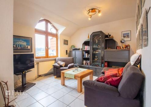 Die Maisonette-Wohnung, die über eine Wohnfläche von ca. 78 m² verfügt, erstreckt sich über zwei Wohnebenen (Ober- und Dachgeschoss).