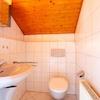 Das Badezimmer im Dachgeschoss ist ebenfalls raumhoch gefliest und verfügt über einen Toilette.