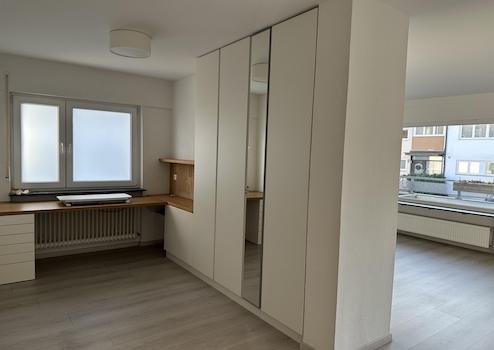 Praktisch und flexibel: Vom Flur aus gelangen Sie in einen offenen Arbeitsbereich, perfekt für Homeoffice oder kreative Projekte. Die vorhandenen Büromöbel inklusive höhenverstellbarem Schreibtisch und Einbauschrank können auf Wunsch ohne Mehrkosten übernommen werden.