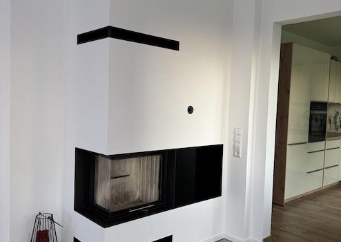 • Wohn- & Esszimmer: Großzügig geschnitten mit bodentiefen Fenstern, die den Blick in die Natur freigeben und den Raum optimal belichten. Ein Spartherm Kaminofen sorgt für wohlige Wärme und Gemütlichkeit