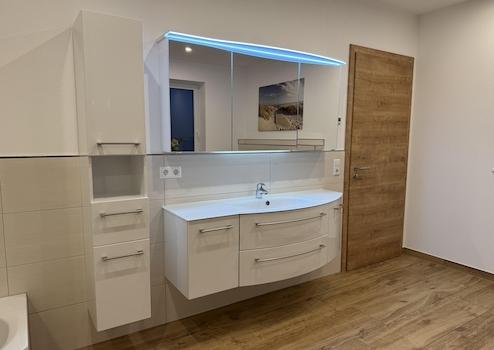 • Bad: Dusche, WC und Badgarnitur. Hier ist die Sauna bereits angelegt (verkabelt und Steuerungsgerät eingebaut)