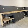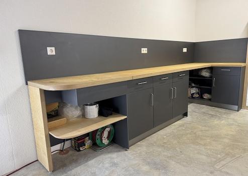 Doppelgarage, ca. 47 qm. Mit verlegtem Kabel für zwei Ladestationen für E-Autos. Große Werkbank, Schränke und Waschbecken. Zusätzlich extra großer Stellplatz vorhanden.