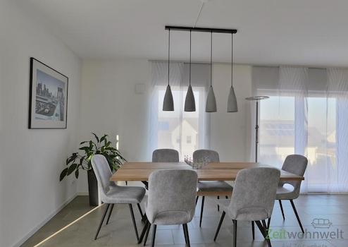### Please note the availability date! Bitte das Verfügbarkeitsdatum beachten! ### höbsche möblierte Wohnung in ruhiger Wohnlage in Waldkappel; WLAN; großes Wohnzimmer mit modernen rustikalen Möbeln, Sofa, Esstisch, ...