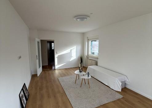 Im Rahmen der umfassenden Sanierung wurde die Wohnung vollständig modernisiert und präsentiert sich heute in einem neuwertigen, bezugsfertigen Zustand. Die durchdachte Raumaufteilung bietet ein großzügiges Wohnzimmer, ein Schlafzimmer sowie ein weiteres Zimmer, das flexibel als Kinder-, Arbeits- oder Ankleidezimmer genutzt werden kann.