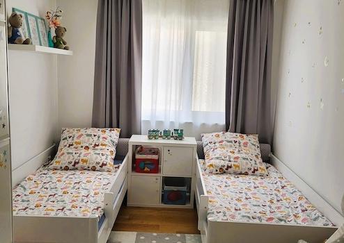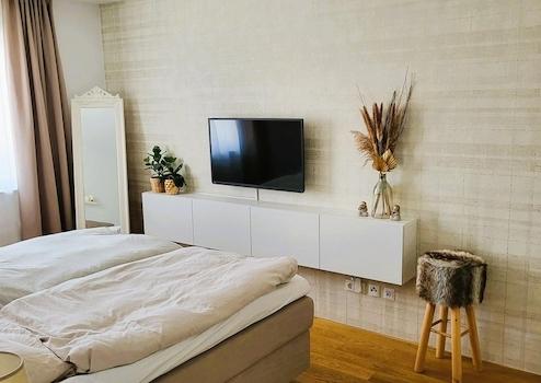 Die Wohnung ist vollständig mit Fußbodenheizung ausgestattet, gesteuert über Raumthermostate. Hochwertiges Parkett, geflieste Nassräume, dreifach verglaste Fenster und maßgefertigte Fliegengitter sorgen für Komfort. Die halboffene Einbauküche mit modernen Geräten und großem Doppeltürkühlschrank ist im Kaufpreis enthalten.