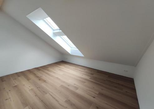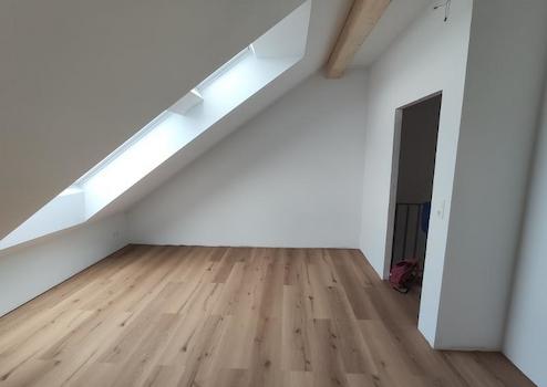 Im Dachgeschoss sind über den Flur zwei weitere Kinder- /oder Arbeitszimmer, ein zweites Bad (mit Dusche) und ein Abstellraum zu erreichen. Die Bodenbeläge sind hier ebenfalls Fliesen (im Bad) und ansonsten überall Vinylböden. Alle Räume des Hauses sind mit Fernsehanschlüssen und