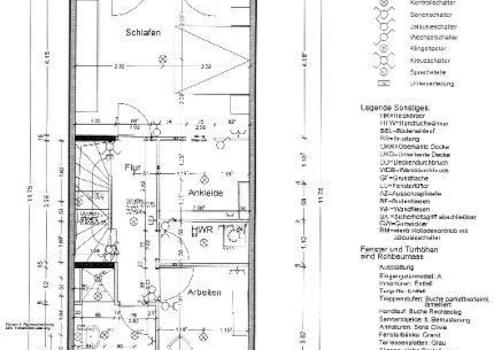 Unter der Treppe, die ins Obergeschoss führt, ist ein Abstellraum für die Unterbringung eines Staubsaugers usw. geplant. Vom Wohnbereich aus haben die Kinder Zugang zum Garten und die Eltern können an sonnigen Tagen auf die Terrasse grillen. An der Hauswand zur Terrasse ist ein