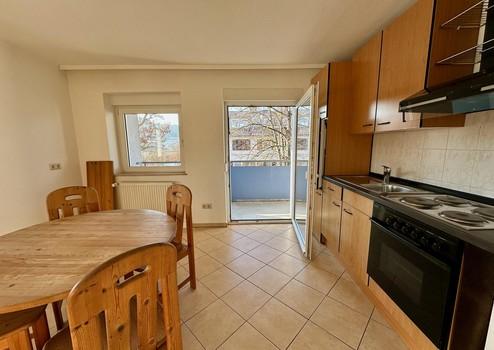 Über die Küche gelangt man direkt auf den sonnigen Balkon – ideal zum Entspannen oder Lernen an der frischen Luft.