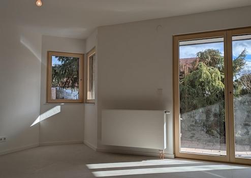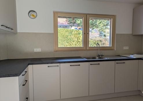 Neu eingebaute, hochwertige 3-fachverglaste Holz-Alu Fenster mit elektisch bedienbaren Rolläden sorgen für gute Isolierung und behagliches und sicheres Wohngefühl.