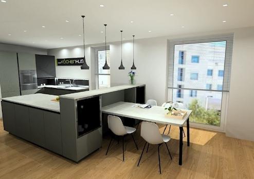 Herzstück der Wohnung ist der großzügige Wohn- und Essbereich mit offener Küche, der durch seine Helligkeit und Weitläufigkeit begeistert. Die Einbauküche mit integriertem Esstisch überzeugt durch ihr modernes, zeitloses Design. Sie fügt sich harmonisch in das Gesamtbild ein und bietet sowohl funktionalen Komfort als auch hochwertige Optik. Die Einbauküche ist mit Bosch-Markengeräten ausgestattet und lässt keinerlei Wünsche offen.