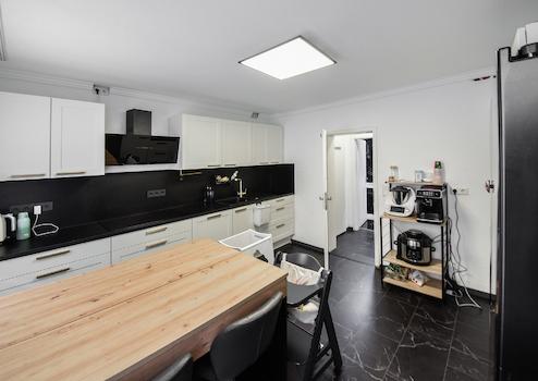 Küche und zwei Schlafräume ergänzen das attraktive Raumangebot. Die neuwertige Einbauküche mit eleganter Lackfront kann optional übernommen werden.