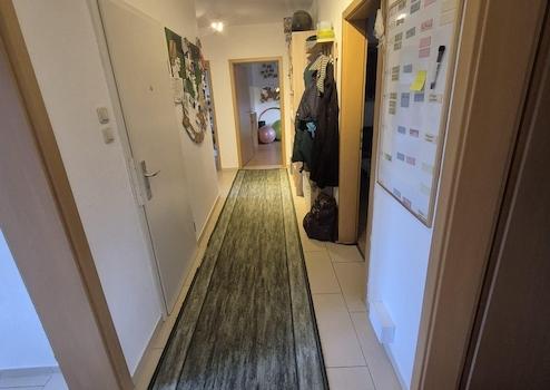Die schöne Wohnung hat eine Grundfläche von 105 qm² und punktet mit einer ruhigen Atmosphäre, einem Balkon sowie einem sehr schönen Gemeinschaftsgarten der von den Bewohnern des Hauses genutzt werden darf. Die Wohnung verfügt über drei Schlafzimmer, einem Wohnzimmer, einer Küche, zwei Bädern und dem Flur. Die Zimmer haben einen Laminatboden. Im Bad, Flur und in der Küche sind Fliesen verlegt. Zu der Wohnung gehört ein eigenes Kellerabteil und es gibt einen Fahrradkeller, in dem das Fahrrad abgestellt werden kann. Die Gasetagenwohnung von der Firma Wolf ist erst ein Jahr alt und sorgt für moderate Heizkosten.