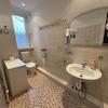 Das Badezimmer verfügt über eine Dusche und ein Fenster, das für natürliche Belüftung und Tageslicht sorgt. So wird das morgendliche Aufstehen zum Licht- und Wohlfühlerlebnis.