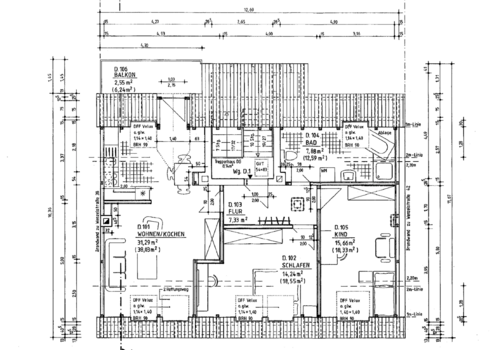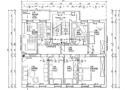 Vom 1. Obergeschoss bis zum 3. Obergeschoss befinden Sie jeweils über 100 m2 große Wohnungen mit 3 Schlafzimmern, einem Wohnzimmer, einer geräumigen Küche mit Ausgang zum Balkon und jeweils mit einem Bad mit Wanne und Dusche und natürlich mit Fenster.