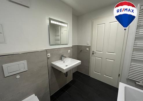 Das modern gestaltete Badezimmer ist mit einer Badewanne ausgestattet und fügt sich harmonisch in das Gesamtbild der Wohnung ein.