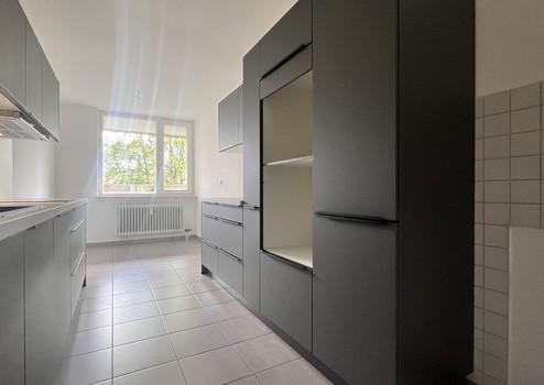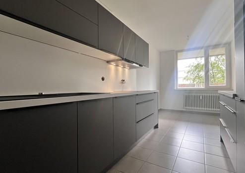 Die elegante Einbauküche fügt sich harmonisch ins Wohnkonzept ein und kann auf Wunsch vom Nachmieter übernommen werden.