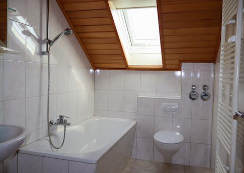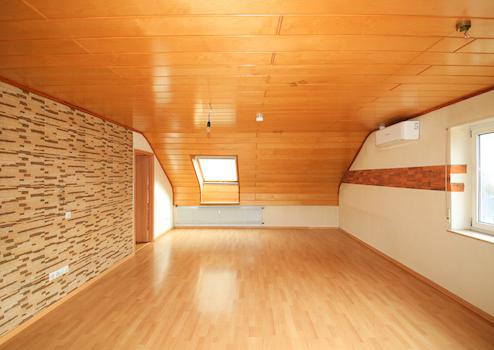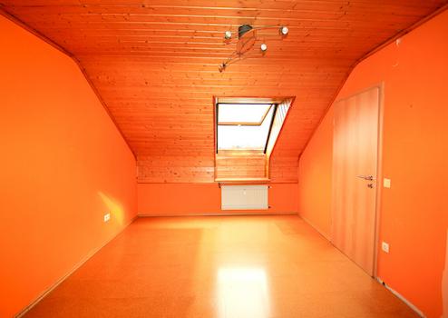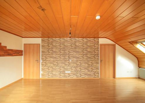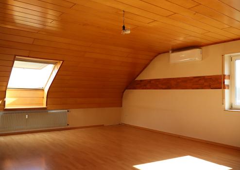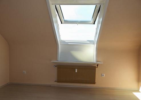 Zwei gut nutzbare Zimmer eignen sich flexibel als Schlaf, Kinder oder Arbeitszimmer. Der Wohnbereich lässt sich angenehm möblieren und bildet den Mittelpunkt der Wohnung. Typisch für das Dachgeschoss sorgen Dachflächenfenster für Tageslicht und eine offene Raumwirkung.