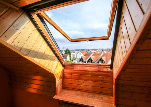 Es sind 5 Dachgeschossfenster und 2 Fassadenfenster vorhanden. Drei von fünf Dachfenstern wurden 2010 ersetzt durch Kunststofffenster der Marke "Roto". Die zwei Holzfenster im Schlafzimmer und Wohnzimmer funktionieren einwandfrei und das Fenster in Schlafzimmer hat zudem auch die elektrische Rolladenansteuerung.