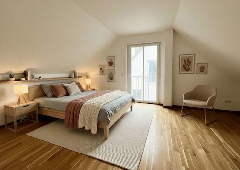 Alle Wohnräume sind mit einer Fußbodenheizung ausgestattet. Im Erdgeschoss sind moderne Fliesen verlegt, während Echtholzparkett in den oberen Geschossen das Raumgefühl aufwertet.