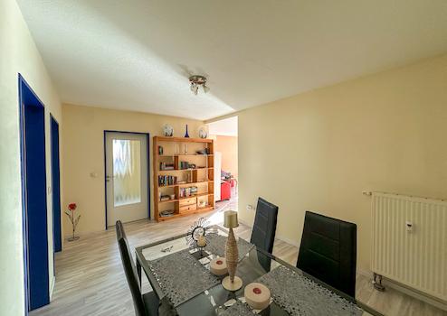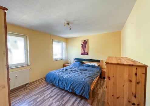 Von der Diele gelangen Sie in den offenen Wohn- und Essbereich, der den zentralen Mittelpunkt der Wohnung bildet. Von hier aus erschließen sich alle weiteren Räume. Die beiden Schlafzimmer verfügen jeweils über zwei große Fenster und unterscheiden sich in der Größe. Das größere eignet sich ideal als Elternschlafzimmer, das kleinere als Kinderzimmer oder Homeoffice.