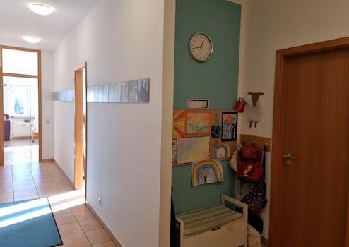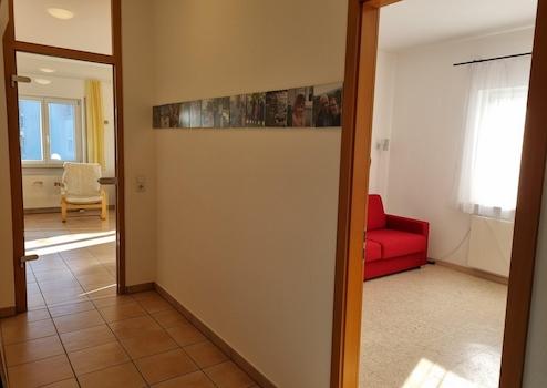- Fliesenboden in Küche, Wohnzimmer und Flur