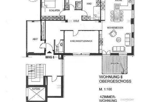 Die Wohnung befindet sich im ersten Obergeschoss eines sehr gepflegten Mehrfamilienhauses mit 10 Wohneinheiten, das im Jahr 2004 erbaut wurde und sich in einem sehr guten Allgemeinzustand befindet. Die Wohnung bietet großzügige Räumlichkeiten auf einer Ebene, überhohe Decken (2,80 m), einen Aufzug, einen großen sonnigen Südbalkon und beinhaltet einen Hausmeisterservice. Die Wohnfläche von ca. 124 m² verteilt sich auf vier Zimmer.