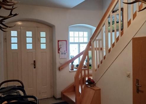 Diese charmante 2-Raum-Wohnung befindet sich im 1. Obergeschoss einer ehemaligen Unternehmervilla mit Gartennutzung eines weitläufigen Parkgeländes. Zudem verfügt diese über eine große Einbauküche. Die Wohnung ist ideal für Mieter, die ein ruhiges und hochwertiges Wohnambiente schätzen. Die idyllische, naturnahe Lage garantiert absolute Ruhe, und aus den Fenstern genießt man einen herrlichen Blick auf die umliegende Natur. Alle Räume sind lichtdurchflutet, da sie jeweils über ein eigenes Fenster verfügen. Die Immobilie wurde 1996 komplett saniert und die Wohnung hochwertig renoviert. Sie ist barrierearm gestaltet, da sie keine Türschwellen besitzt. Der Bodenbelag wurde kürzlich erneuert. Zusätzlich steht ein PKW-Stellplatz zur Verfügung. Das modern ausgestattete Bad verfügt über eine Glasdusche.