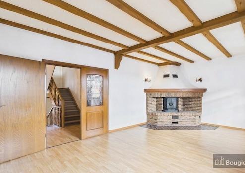 Der Hauptwohnbereich erstreckt sich über das Ober- und Dachgeschoss und bildet das Herz des Hauses. Großzügige Räume, viel Tageslicht und ein markanter Kamin schaffen hier eine angenehme Wohnatmosphäre. Die Küche mit angrenzendem Essbereich ist als zentraler Treffpunkt gedacht und schließt direkt an einen überdachten Balkon an, der Dir einen geschützten Platz im Freien bietet. Zwei Schlafzimmer, ein Bad und ein separates WC finden sich im Dachgeschoss und komplettieren den schlüssigen Grundriss.