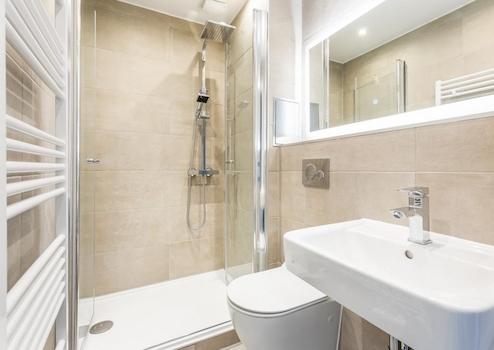 - Komplett saniertes Badezimmer mit Regendusche und Handtuchheizkörper