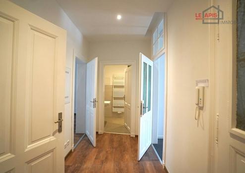 Die entzückende, frisch renovierte Wohnung (Erstebezug nach Renovierung) ist mit weißen gespachtelten Wänden (Glattputz), einer dekorativen Stuckdecke im Wohnzimmer sowie Vinylboden (Holzoptik) und Fliesenboden versehen.