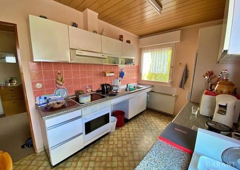 Besonders hervorzuheben ist das Wohnzimmer mit direktem Zugang zur Terrasse. Rund um das Haus erstreckt sich ein weitläufiger Garten, der mit seinen vielfältigen Gestaltungsmöglichkeiten begeistert: ob eigener Pool, ein liebevoller Gemüsegarten oder eine grüne Oase zum Entspannen - hier können Sie Ihren Ideen freien Lauf lassen.