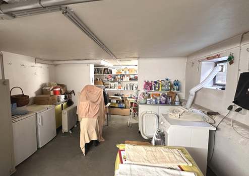 Der Vollkeller umfasst mehrere Nutzräume, den Heizungsraum mit Waschküche, ein Duschbad mit WC sowie eine PKW-Garage.