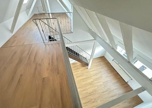 Über die Treppe gelangt man zur Galerie. Hier besteht noch die Möglichkeit, durch eine Abtrennung, einen weiteren Raum zu erstellen.