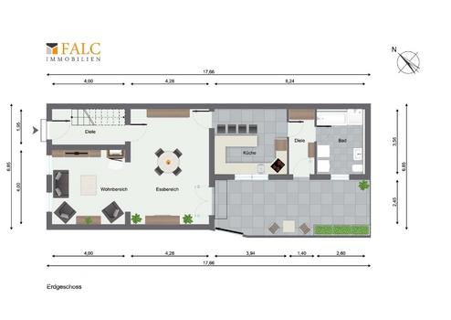 - großzügiger Wohn-/Essbereich mit Zugang zu Terrasse und Garten