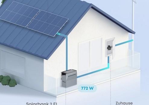 Auf dem Gartenhaus befindet sich eine PV Anlage mit Speicher-Accu und 4x Solarpanelen.