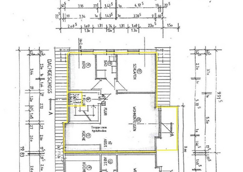 Eine offene Holztreppe führt in den ausgebauten Spitzboden. Hier steht ein abgeschlossener großer Raum mit 3 Fenster als weitere Nutzfläche zur Verfügung.