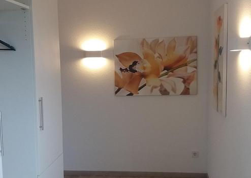 Zweizimmerwohnung mit einem Wohnzimmer und einem Schlafzimmer, Einbauküche, Essbereich, Duschbad, Flur, Balkon. Sie liegt im obersten Stockwerk eines Mehrfamilienappartementhauses.