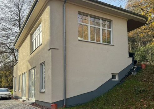 Ein wunderschönes freistehendes Einzelhaus mit Geschichte, idyllisch gelegen mit riesiger Terrasse, großer Teil überdacht, mit Blick auf die Berge und auf der Terrassen-Hinterseite nur noch Wiese und Wald als Architekturbüro, Coaching-Retreat oder Firmensitz.