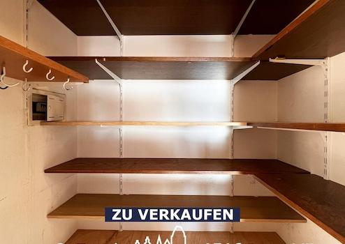 Ein separater Abstellraum mit Regalen bietet praktischen Stauraum für Vorräte oder Haushaltsutensilien.