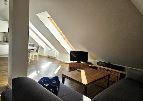 Diese attraktive Dachgeschosswohnung mit Meerblick im 2. OG zeichnet sich durch eine gehobene Innenausstattung aus und steht zum Kauf. Die drei einladenden Zimmer können Sie nach Ihrem persönlichen Geschmack einrichten oder auch die aktuelle und sehr ansprechende Einrichtung komplett übernehmen, sollte das Appartement weiter als Ferienappartement vermietet werden. Der großzügige Wohnraum mit einer modernen offenen Küche schafft eine einladende Atmosphäre. Das Badezimmer ist mit einer Dusche ausgestattet und überzeugt mit zeitlosem Design. Bei der Heizungsart der Wohnung, die sich in einem 2011 erbauten Haus befindet, handelt es sich um eine Gasheizung. Der Balkon lädt zum Entspannen und Sonne tanken ein. Ein privater Stellplatz im Carport gehört ebenfalls zur Wohnung und sorgt für bequemes Parken. Ein Abstellraum in der Carportzeile, z.B. für Fahrräder rundet den Komfort ab.