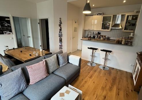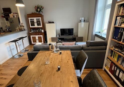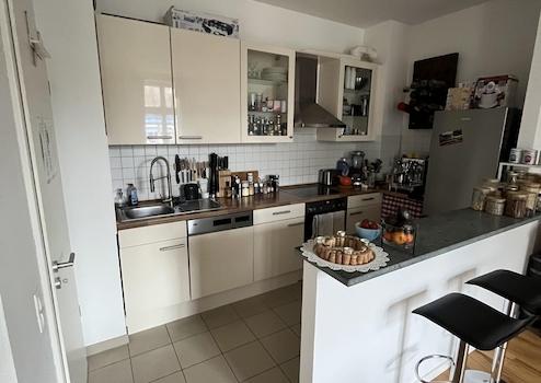 Der Fußboden ist mit einem hochwertigen Eichenparkett Boden versehen. Die Materialien wurden im Zuge der Sanierung allesamt aufeinander abgestimmt. Die Maßangefertigte, offene Einbauküche von Nobilia kann gegen einen Abschlag vom Vermieter übernommen werden. Zusätzlich fallen noch Heiz-/Warmwasser- sowie Stromkosten an.