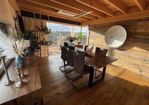 Dieses moderne Einfamilienhaus beeindruckt durch hochwertige Holz-Skelettbauweise, Energieeffizienzklasse A und eine außergewöhnliche Ausstattung. Auf 244 m² Wohnfläche (311 m² Wohn-/Nutzfläche) bietet es großzügiges Wohnen in sonniger Hanglage mit herrlichem Fernblick über Namborn.