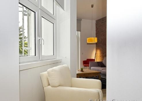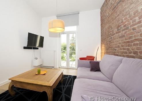 Are you searching for something extraordinary? Then look no further! This open-plan apartment absolutely lives up to your high expectations in respect of quality and comfort. The cooking area features a high quality fitted kitchen unit, including dishwasher and fully automatic coffee machine, and of course, tableware and kitchen utensils are also provided for you. The dining table offers space for four people. The living area is furnished with a comfortable sofa and LCD TV. From here you can access the rear-facing balcony with its glorious view of greenery. The sleeping area houses a cosy double bed and a spacious wardrobe. The high quality bathroom offers a floor level shower. This includes all service charges, use of the high speed internet connection, a caretaker service and the weekly cleaning service.