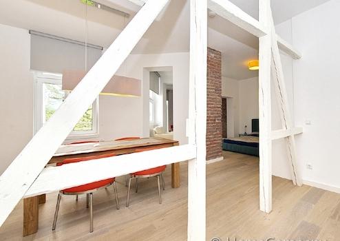 Apartment in a very well-maintained art nouveau building in the centre of Ratingen. This is a non-smoking property. Excellent shopping facilities can all be found in the vicinity. The bus station is just a short walk away, and the 712 takes you to Düsseldorf city centre in about 18 minutes. The Ratingen Ost local rail station is about a quarter of an hour’s walk way. From here the S6 route takes you to Düsseldorf’s main rail station in about 18 minutes. Düsseldorf airport is around 7.5km away and the Messe Düsseldorf trade fair centre is only about 10km away. The A44/A3, with connections to the greater Düsseldorf/Cologne region, and the A52 with its ideal connection to the Ruhr area are both just 5 minutes or so away. The surrounding streets offer ample car parking opportunities. Or if you prefer, you can rent a garage parking space in the immediate vicinity.
