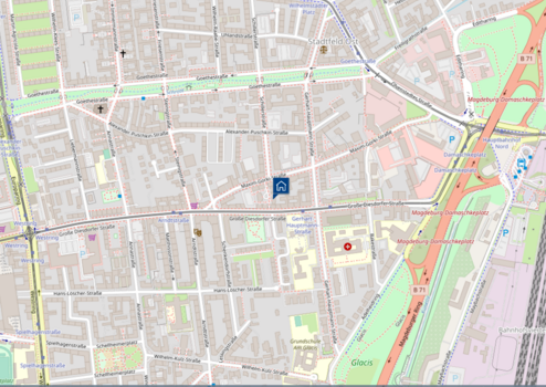 Parallel zur Großen Diesdorfer Straße - eine der großen Einkaufs und Verbindungsstrecken Magdeburgs - hat man alle Annehmlichkeiten der Großstadt vor der Tür.