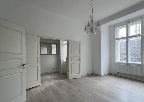 Zum Verkauf steht eine frisch sanierte 1,5-Zimmer-Wohnung mit ca. 50 m² Wohnfläche im 2. Obergeschoss eines gepflegten Altbaus aus dem Jahr 1905.