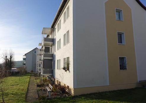 Vollsanierte 3-R-WE mit großem Balkon und unverbautem Blick im 2.OG mit Kellerraum, Bad mit Wanne/WC, alle Wände und Decken sind fertig tapeziert, Laminatfußboden in allen Räumen neu, neue Elektrik, Sanitär, Innentüren usw.. Auf Wunsch wird eine Einbauküche mit Geschirrspüler zur Miete für € 55,00 mtl. durch den Vermieter gestellt. Mietbeginn ist ab sofort möglich.