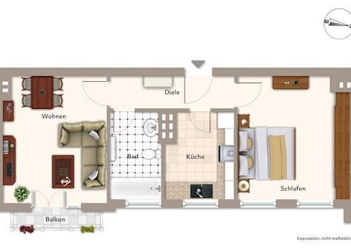 entspannt zu wohnen. Auf Grund der Ausrichtung ist die Wohnung sehr hell und lichtdurchflutet. Die