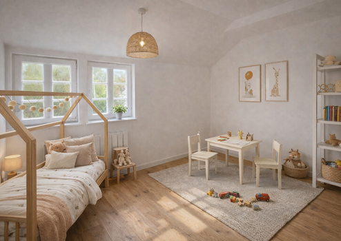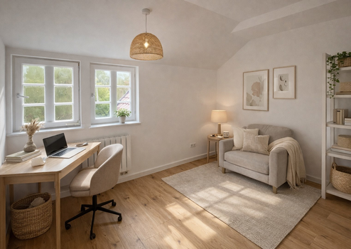• Überwiegend optimale Stellfläche bei stillvollem Dachgeschossflair- Dachschrägen erst