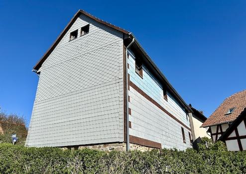Dieses um 1890 in traditioneller Fachwerkbauweise errichtete Einfamilienhaus mit angrenzender Scheune vereint historischen Charme mit vielseitigen Nutzungsmöglichkeiten. Gelegen im beschaulichen Stadtteil Hülsa der Stadt Homberg (Efze), bietet das Objekt Raum für individuelle Gestaltungsideen und ein ruhiges Leben auf dem Land. Das Wohnhaus erstreckt sich über zwei Etagen und verfügt im Erdgeschoss über eine Küche sowie ein gemütliches Wohnzimmer. Im Obergeschoss befinden sich drei hintereinander angeordnete Schlafzimmer sowie ein Tageslichtbad mit Dusche und WC, das 2024 vollständig erneuert wurde. Ein separater Flur durch die Schlafräume ist im oberen Bereich nicht vorhanden. Das Gebäude ist komplett unterkellert. Vom Keller aus besteht ein direkter Zugang zur angrenzenden Scheune, die vielfältige Möglichkeiten eröffnet: Ein Teil ist bereits als Garage ausgebaut, während der andere Bereich aktuell als Werkstatt genutzt wird. Beide Bereiche sind zusätzlich von außen separat begehbar. Zu dem Objekt gehört ein separater Garten mit einer Fläche von ca. 500 m². Sind Sie neugierig geworden? Dann rufen Sie uns doch einfach für nähere Informationen oder die Vereinbarung eines Besichtigungstermins an! Bitte sehen Sie sich auch unseren virtuellen 360°-Rundgang zu dieser Immobilie an! So bekommen Sie bereits vorab einen realistischen Eindruck von den Gegebenheiten vor Ort.